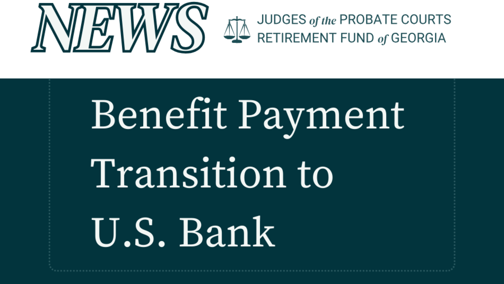 The JPC Retirement Fund is excited to announce the transition to a new Benefit Payment Custodian. Effective January 1, 2024, U.S. Bank will become the payor of pension benefits for the Judges of the Probate Court Retirement Fund of Georgia.