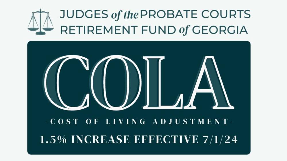 The JUDGES of the PROBATE COURTS RETIREMENT FUND of GEORGIA is pleased to announce that the Board of Commissioners approved a Cost of Living Adjustment (COLA) for all current and future retirees at the May Board meeting. The 1.5% increase will be effective as of July 1, 2024.
