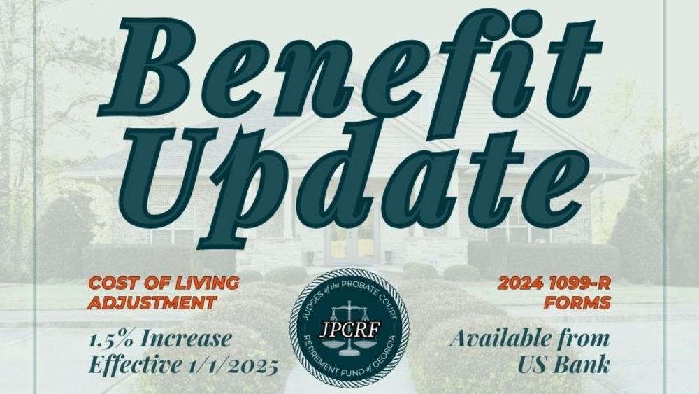 The Judges of the Probate Court Retirement Fund of Georgia is pleased to announce a cost-of-living adjustment (COLA) effective January 1, 2025. Current and future retirees will receive a COLA of 1.5%. This adjustment ensures the fund continues to provide valuable support to its members while reflecting changes in economic conditions. Retirees will see this change reflected in the payment issued on January 28, 2025.